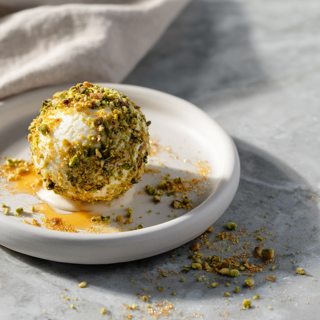 - The Finish: A heavy pour of milk chocolate ganache and crushed “green gold” (premium Iranian or Turkish pistachios).