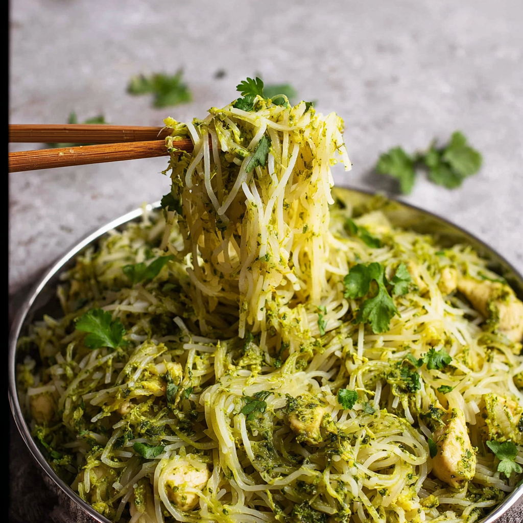 Nouilles de Riz Vert au Gingembre : L’Équilibre Parfait entre Fraîcheur et Vitalité