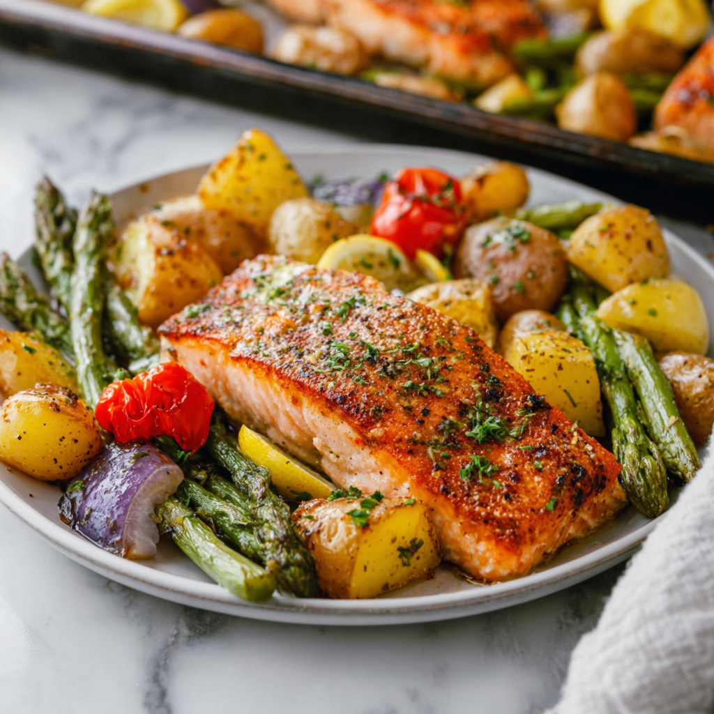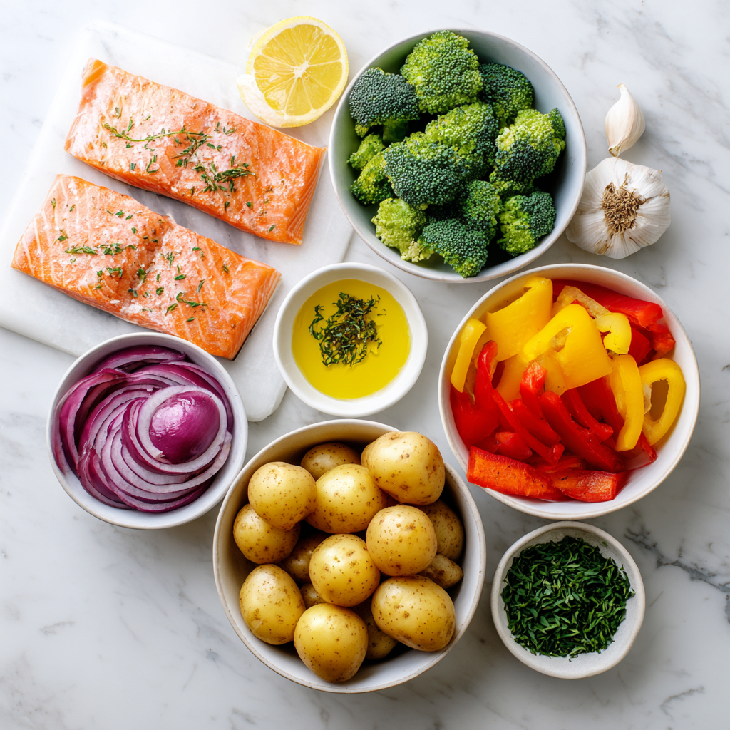 • The Protein: Nestle 3–4 salmon fillets into the vegetables.